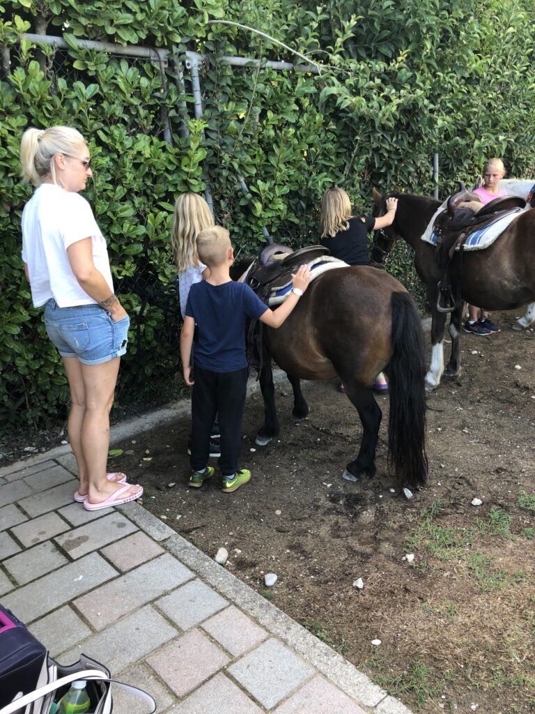 mit den Enkerln am Jesolo International Club Camping. Viel Bespaßung für die Kids 😉 inkl. Pony-Reiten, Tenniskurs, und vielem mehr …